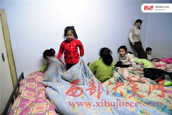 圖為2012年12月24日,重慶萬州明德小學(xué),由教室改建的寢室。