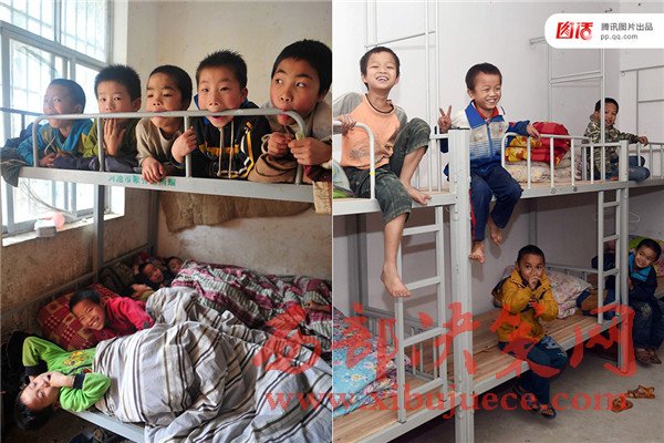 近些年,政府和民間組織相繼推進(jìn)兩免一補(bǔ)、免費(fèi)午餐工程等,加大投入改善農(nóng)村基礎(chǔ)教育環(huán)境。左圖:2014年3月28日,廣西廣西都安瑤族自治縣梅珠小學(xué)學(xué)生宿舍,一個(gè)床上擠著3、4名學(xué)生;右圖:廣西啟動(dòng)為期4年的全面改善貧困義務(wù)教育薄弱學(xué)?;巨k學(xué)條件計(jì)劃,率先攻堅(jiān)“大通鋪”難題,梅珠小學(xué)的孩子們告別三四人的“大通鋪”,實(shí)現(xiàn)一人一床。