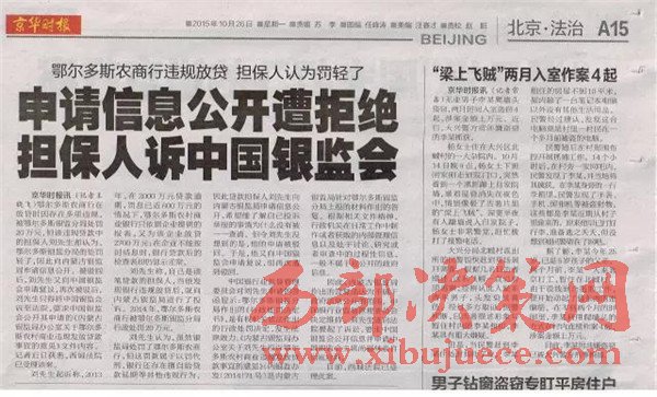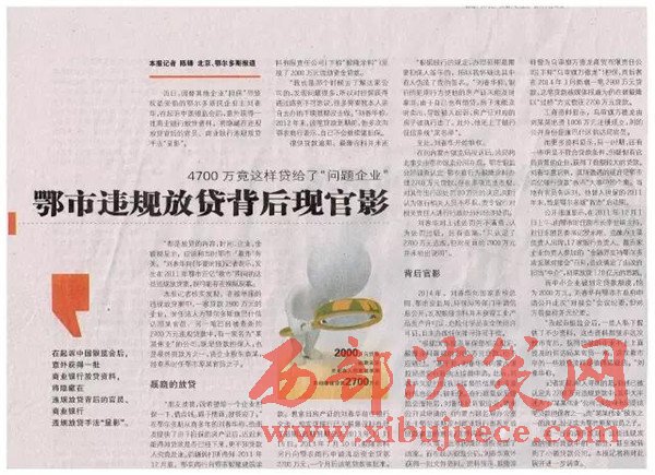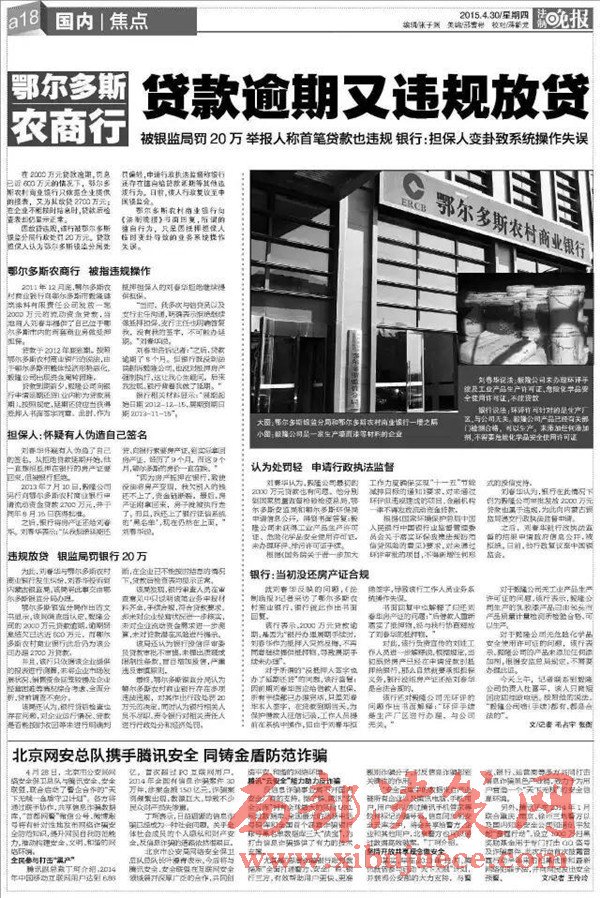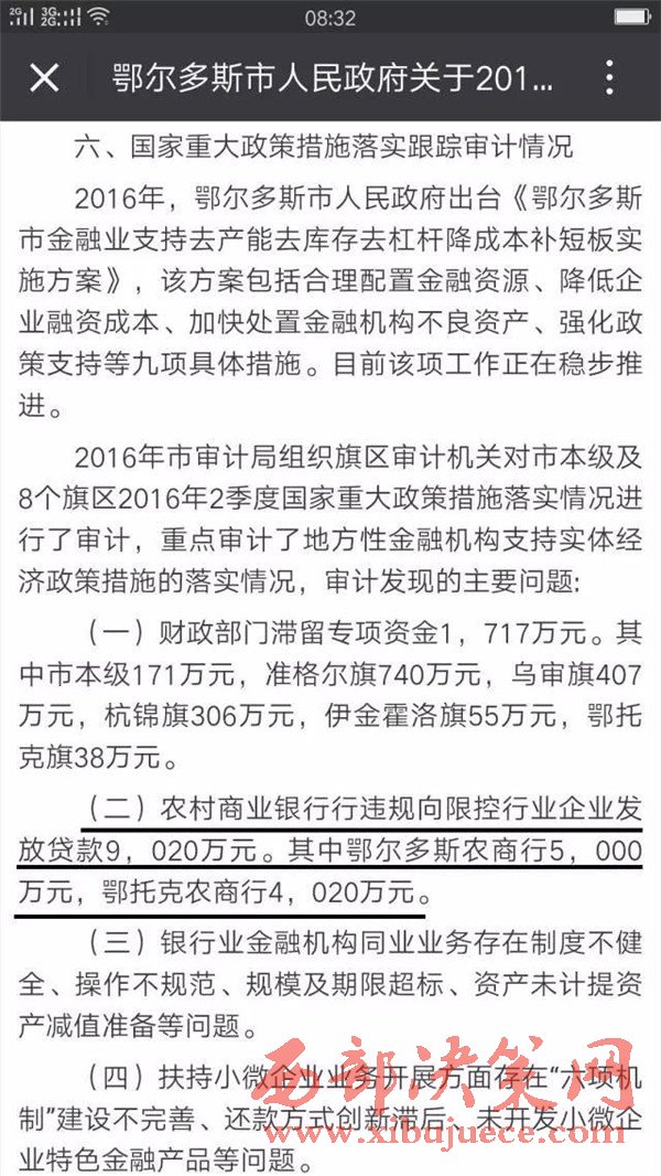 2、在內(nèi)蒙古自治區(qū)紀(jì)委監(jiān)督之下內(nèi)蒙古銀監(jiān)局查出鄂爾多斯農(nóng)商銀行發(fā)放的2000萬(wàn)、2700萬(wàn)、2900萬(wàn)三筆貸款屬于違規(guī)貸款;