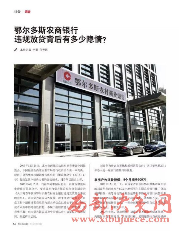 維權(quán)中劉春華又向內(nèi)蒙古自治區(qū)紀(jì)委進(jìn)行了實(shí)名舉報(bào),鄂爾多斯農(nóng)商銀行多次違法發(fā)放貸款一案內(nèi)蒙古自治區(qū)紀(jì)委高度重視。經(jīng)內(nèi)蒙古自治區(qū)紀(jì)委監(jiān)督內(nèi)蒙古銀監(jiān)局對(duì)鄂爾多斯農(nóng)村商業(yè)銀行違規(guī)放貸事實(shí)進(jìn)行了核查、再查等環(huán)節(jié)之后確定劉春華舉報(bào)違法放貸2000萬(wàn)、2700萬(wàn)、2900萬(wàn)屬實(shí)。