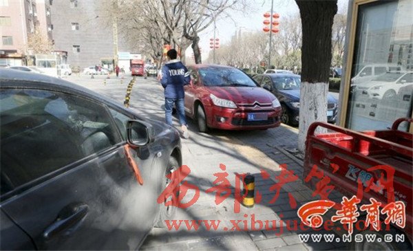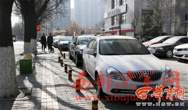 昨日上午,華商報記者在長延居小區(qū)門口看到,那個黑停車場可以免費停車,沒人看管,地樁也被去掉了,有的車停放在盲道上。附近群眾說,沒人看管之后,這里更亂了,到了晚上,車停得連路都沒辦法走。