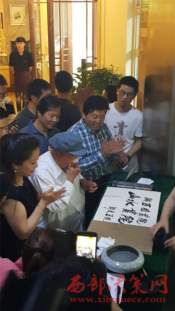 當李老師談起書法來,兩眼炯炯有神,自放異彩,書法已融入他的生命。當我們走進李老師的工作室,練習的作品如一座小山,筆架上的毛筆各種型號應有盡有,裝墨汁的缽盂,很是夸張,不敢說墨池,那樣有點浮夸,有點像關(guān)中人吃面的老碗那樣大的缽盂。沒有上過大學的他,也許是對傳統(tǒng)文化的摯愛,也許是身邊的朋友影響了他。