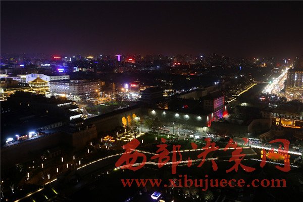 在鐘樓、鼓樓、大雁塔、長(zhǎng)安塔等標(biāo)志性建筑物熄燈后,西安城墻不例外,城墻南門熄燈一小時(shí),周邊商場(chǎng)以及飯店也都相繼熄燈。