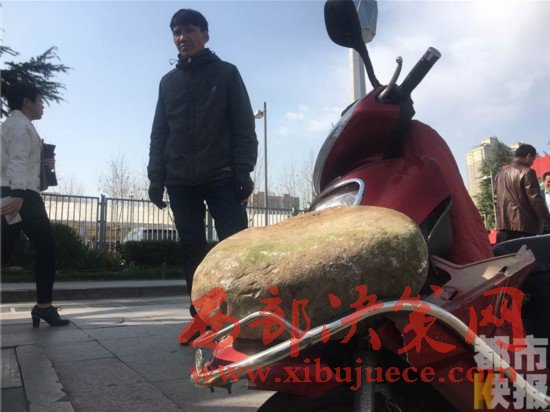 昨天(3月26日)上午,在西安南郊,一個電動車司機(jī)竟然搬起了一塊巨大的石頭,將自己的電動車砸毀,究竟是因為什么原因呢?