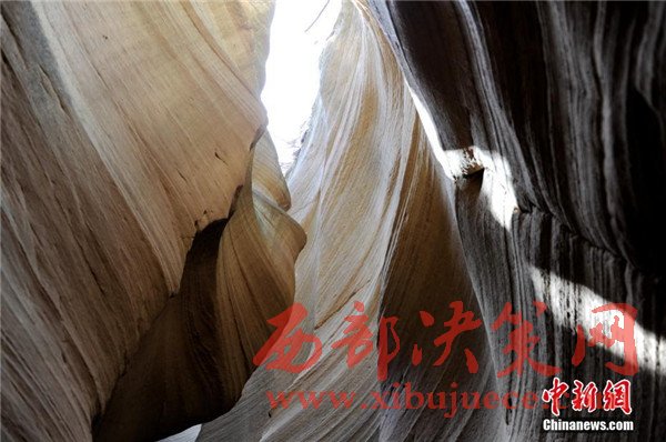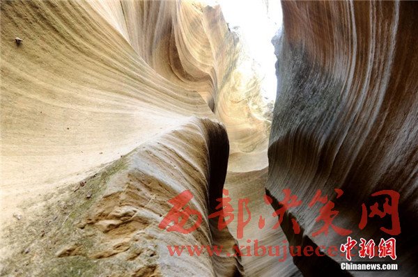 位于陜西省甘泉縣雨岔村的峽谷,是陜北黃土高原上的地質(zhì)奇觀,峽谷內(nèi)壁凹凸不平、線條流暢,走進峽谷,峽壁上的線條如波浪從身邊劃過,最窄的地方只有一個人側(cè)著身子方可過去,其迷人之處與美國羚羊峽谷相媲美。