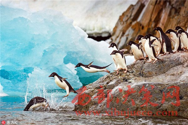 攝影師兼導(dǎo)游DaveMerron在南冰洋帶隊(duì)旅游時(shí)邂逅一群重返海洋的企鵝,這群可愛(ài)的小家伙排著隊(duì)站在巖石上,一個(gè)接一個(gè)跳進(jìn)海洋“泡澡”,不遠(yuǎn)處的冰山掩映著它們張開小短翅膀起飛的身影,畫面十分美好。