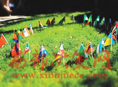 南南學(xué)院院內(nèi)的草地上插著20多個國家的小國旗。