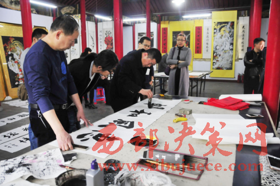 西部決策網(wǎng)-西部大開發(fā)訊(胡玉敏 通訊員 李海其 胡玉軍)4月13日下午,河北省邢臺(tái)市橋西區(qū)知聯(lián)會(huì)、邢臺(tái)市橋西區(qū)政協(xié)第三委員小組,在紫金公園聚義廳開展了書法文化交流活動(dòng)?;顒?dòng)特邀我市知名書畫家現(xiàn)場(chǎng)揮毫潑墨,切磋書畫技藝,創(chuàng)作作品20余幅。民盟市委副主委付曉婭,橋西區(qū)政協(xié)主席張建波、區(qū)政協(xié)副主席趙振群、王之良等領(lǐng)導(dǎo)應(yīng)邀參加。