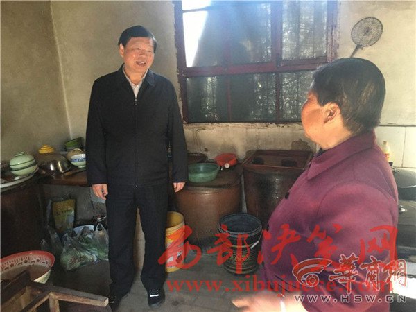 婁勤儉詳細(xì)了解了老人家庭成員、收入來源等,詢問了干部定點(diǎn)幫扶情況。隨后,他走進(jìn)屋里察看生活情況,在土坑邊彎下腰了解如何取暖,在廚房詢問吃水等情況。走出廚房后,他感嘆,“條件確實(shí)不太好,我們的工作還得加把勁啊!”