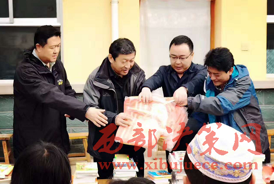 西部決策網(wǎng)-西部大開發(fā)訊(杜杰 通訊員 李海瑞)4月20日, 甘肅省廣播電影電視總臺(tái)精準(zhǔn)扶貧干部赴和政縣新營(yíng)鄉(xiāng)大溝村開展扶貧捐助活動(dòng)。省廣電總臺(tái)黨委委員、副臺(tái)長(zhǎng)久喜佳,和政縣委常委、縣委宣傳部部長(zhǎng)楊宏學(xué)等出席捐助活動(dòng)儀式.甘肅電視臺(tái)公共頻道倡議動(dòng)員黨員職工給大溝村小學(xué)捐助書籍400多本,捐助學(xué)生書包80個(gè),還有部分學(xué)習(xí)用品。同時(shí)給大溝村幼兒園捐助了部分書包。另外,幫扶干部還深入大溝村精準(zhǔn)扶貧戶家中,訪貧問(wèn)苦,進(jìn)行調(diào)研慰問(wèn),并發(fā)放了民情連心卡。