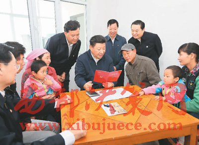 2016年8月23日上午,習(xí)近平在青海省海東市互助土族自治縣五十鎮(zhèn)班彥村村民呂有金家察看《扶貧手冊(cè)》,了解扶貧措施落實(shí)情況。
