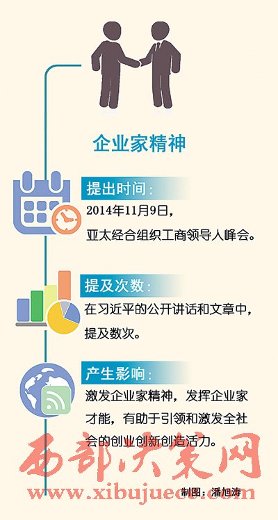 “我們?nèi)嫔罨母?,就要激發(fā)市場(chǎng)蘊(yùn)藏的活力。市場(chǎng)活力來自于人,特別是來自于企業(yè)家,來自于企業(yè)家精神。”2014年11月9日,在亞太經(jīng)合組織工商領(lǐng)導(dǎo)人峰會(huì)上,面對(duì)來自數(shù)十個(gè)國家和地區(qū)的1500多位工商界代表,國家主席習(xí)近平特別提及了企業(yè)家精神。