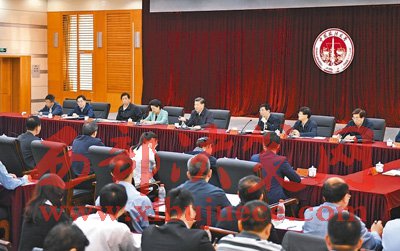 之后,習近平來到學生活動中心三層會議室,同中國政法大學師生和首都法學專家、法治工作者代表、高校負責同志座談。中國政法大學黨委書記石亞軍、終身教授張晉藩、民商經(jīng)濟法學院學生潘輝和北京市朝陽區(qū)人民法院奧運村法庭庭長劉黎先后發(fā)言。他們結(jié)合實際,談教育管理、教書育人、學習生活、法治實踐。