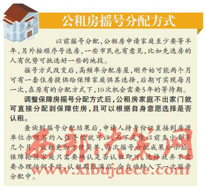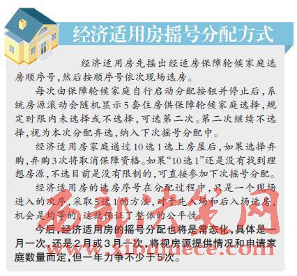 經(jīng)濟(jì)適用房機(jī)選,有兩次“5選1”機(jī)會(huì);公租房人房對(duì)應(yīng),最終達(dá)到每月一次