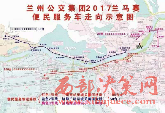 1號接送專線:賽事當天早4:40時開始至6:30結束(路橋封閉之前),1號線車輛由蘭州西站1路站始發(fā),不間斷開往城關黃河橋南,途經:七里河橋、公交集團、西湖公園、白馬浪、中山橋、市委、市政府、城關黃河橋南站點(折返),該線路配車100臺。