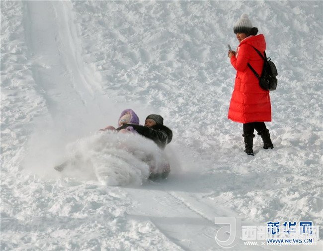 11月25日,在內(nèi)蒙古牙克石鳳凰山開雪節(jié)現(xiàn)場,人們在雪中游玩。