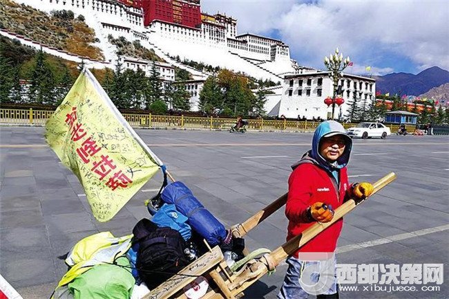 經(jīng)過119天的漫長跋涉,從短袖到棉衣,從酷暑到嚴(yán)寒,他用腳板丈量路程。當(dāng)他站在雄偉的布達(dá)拉宮前,瞬間感覺到“自己的人生完滿了”。