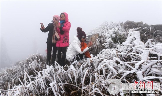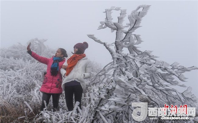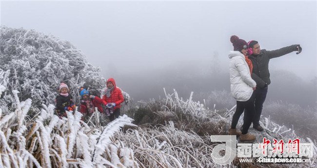 12月17日,福建省長汀縣天井山迎來首場霧凇,吸引不少游客前來觀賞。根據(jù)天氣預(yù)報(bào)顯示,未來的一周,長汀縣最低氣溫低至零下2攝氏度,部分高海拔地區(qū)將出現(xiàn)凍雨現(xiàn)象。(張平 攝)
