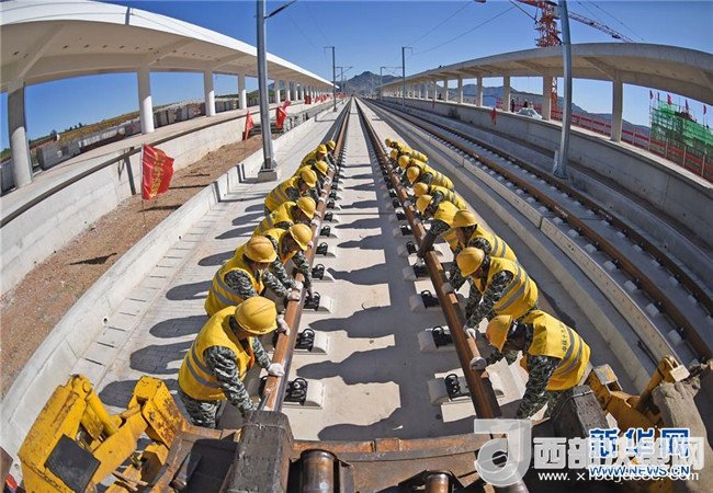中鐵十九局工程人員在京沈高鐵凌源南站進(jìn)行鋪軌作業(yè)(9月28日攝)。京沈高鐵起自北京星火站,經(jīng)河北省承德市、遼寧省朝陽(yáng)市、阜新市接入沈陽(yáng)站,線路全長(zhǎng)698公里,設(shè)計(jì)時(shí)速350公里。