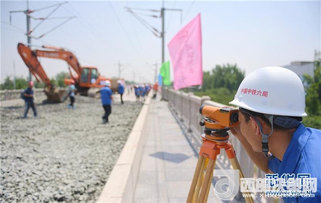 石濟(jì)客專(zhuān)引入石家莊樞紐工程的建設(shè)人員在進(jìn)行測(cè)量作業(yè)(6月15日攝)。這一工程預(yù)計(jì)今年12月底全線通車(chē),建成后石家莊至濟(jì)南乘坐高鐵只需90分鐘左右。