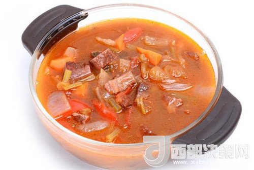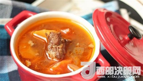 4.2個小時后,加少許鹽調(diào)味,再將切塊的番茄放入,再煮15分鐘即成。