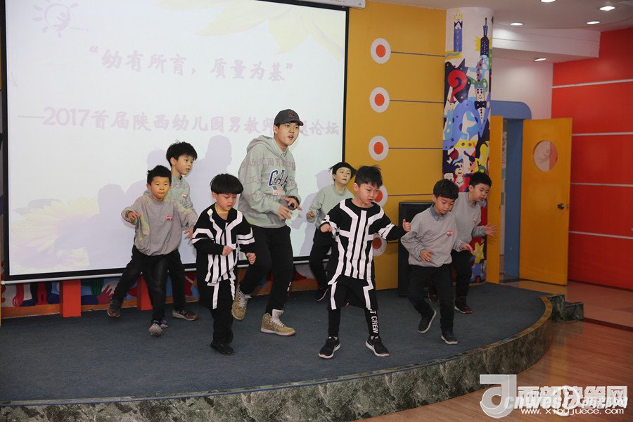 論壇上,西安市浐灞第二幼兒園的謝曉鳴和孩子們帶來的街舞表演點燃了全場,讓大家感受到幼兒園男教師的熱情和激情;陜西師范大學幼兒園的韓凱帶來的鋼琴演奏《一壺美酒》傳達了深切的情感,讓人回味無窮;西航天鼎保育院的趙棟用挺拔健美的身姿表演的拉丁串燒,展現(xiàn)了生命自信的力量;電信十所幼兒園的孫博一只單簧管演奏,吹出了男教師細致柔情的一面;西安市雁塔區(qū)第一幼兒園的陳曉峰演唱的《祖國,慈祥的母親》讓我們領(lǐng)略了幼兒園男教師專業(yè)的唱功和對職業(yè)的自信;西北工業(yè)大學幼兒園教師董樂帶領(lǐng)小朋友展示了動感的啦啦操和籃球活動,場上的小運動員自信的運球、上籃、投球,矯健的身姿,專注的表情,默契的配合,感染著在場的每一位教師;西安市第五保育院肖波和陜西睿星體育一群陽光帥氣的男教師組織的趣味體能游戲?qū)⒒顒託夥胀葡蛄烁叱薄?/p>