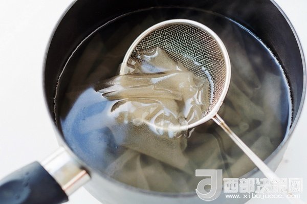 撈出放到清水里浸泡著備用,可防止粉皮黏連成坨。