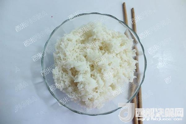 米飯熟了后,立刻打散晾涼,最好是隔夜的,因為經(jīng)過了一個晚上,米飯里面的水份已被蒸發(fā)的差不多,這個時候炒米飯,就不會結成團。而是粒粒分明。如果是用的厚厚的鐵板旺火快炒,就能發(fā)現(xiàn)飯粒在鐵板上跳動。