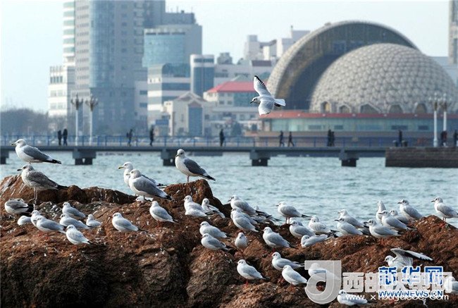 一群海鷗在青島棧橋景區(qū)附近的礁石上歇息(12月28日攝)。每到冬季,大批海鷗從西伯利亞等地飛臨青島越冬避寒,它們多集中停留在青島沿海一線,吸引眾多市民和游客前來觀賞和拍攝。 (記者 李紫恒 攝)