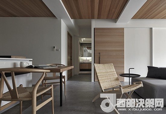 簡約的木制風格中加上一把色調(diào)一致的藤椅,表現(xiàn)出了一種舊時的情懷。