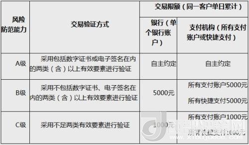 動態(tài)條碼支付的風(fēng)險防范能力分級及交易限額。截圖自中國人民銀行網(wǎng)站