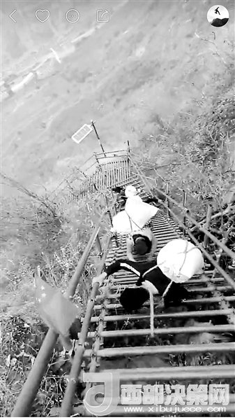 現(xiàn)在,村里24歲的彝族小伙兒拉博已經(jīng)成為首批網(wǎng)紅之一。2016年11月19日,垂直距離約800米、總共約1000級臺階的懸崖村鋼梯工程竣工。拉博就是鋼梯施工隊的一員,在山崖最陡峭的一段,他親手打下了固定的鋼釘。鋼梯完工后,拉博特意去“跑”了一遍,從山頂?shù)缴侥_僅耗時18分鐘,而這段路普通人可能需要一個半小時。從小放羊的拉博習(xí)慣了在山間奔跑跳躍,爬天梯、過吊橋、放牛羊這些生活日常,在5個月的時間里為他帶來了12.6萬的粉絲。