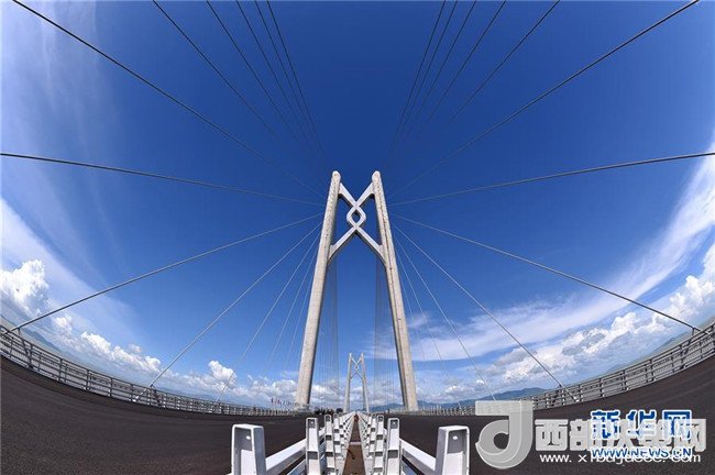 港珠澳大橋上的“中國結(jié)”造型橋塔(2017年7月5日攝)。記者 梁旭 攝