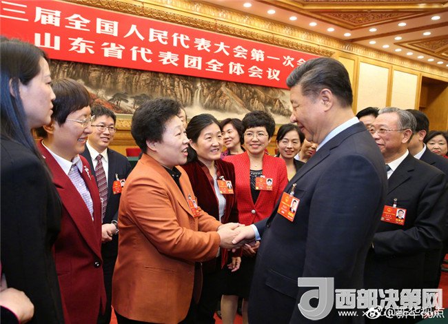新華網(wǎng)北京3月8日電 8日上午,習(xí)近平到山東代表團(tuán)參加審議。正值“三八”國際勞動(dòng)?jì)D女節(jié),習(xí)近平代表黨中央向女代表、女委員、女工作人員及全國各族各界婦女同胞,致以節(jié)日的祝賀和誠摯的祝福。