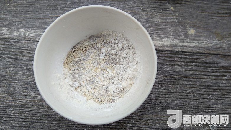 2.先做油酥:面粉20克+花椒粉3克+鹽5克+1勺芝麻混合
