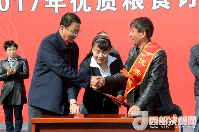 西部決策網(wǎng)——西部大開發(fā)訊(武金鑫)3月15日,寧夏昊王米業(yè)集團帶動大米產(chǎn)業(yè)發(fā)展兌付優(yōu)質(zhì)糧食訂單獎勵資金現(xiàn)場會在靈武召開。此次會議由寧夏昊王米業(yè)集團主辦,寧夏農(nóng)民合作社聯(lián)合會、中化現(xiàn)代農(nóng)業(yè)有限公司協(xié)辦,此外,自治區(qū)農(nóng)牧廳、自治區(qū)財政廳、自治區(qū)糧食局等135家區(qū)內(nèi)外單位和多家媒體參加了此次會議。會議上,寧夏昊王米業(yè)集團自籌資金153.88萬元來獎勵17年優(yōu)質(zhì)糧食訂單完成突出的優(yōu)秀農(nóng)戶共15人并與農(nóng)戶簽訂2018年優(yōu)質(zhì)糧食訂單合同。