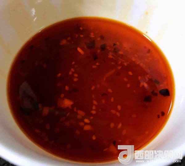 7.自制的辣椒油放入糖、鹽、味精、醋、麻油攪拌均勻