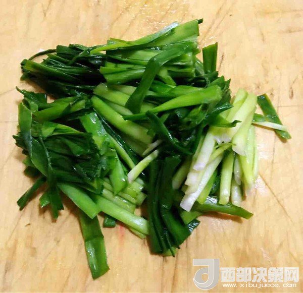 5.韭菜在開(kāi)水中輕輕焯一下立即放入冷水中過(guò)涼
