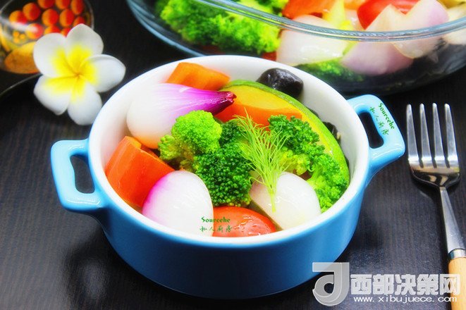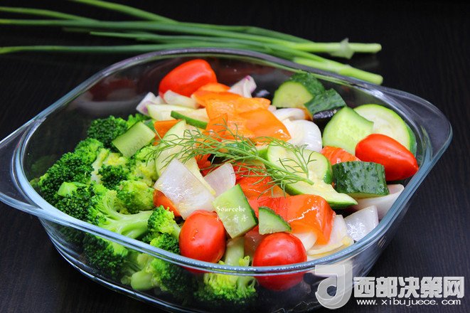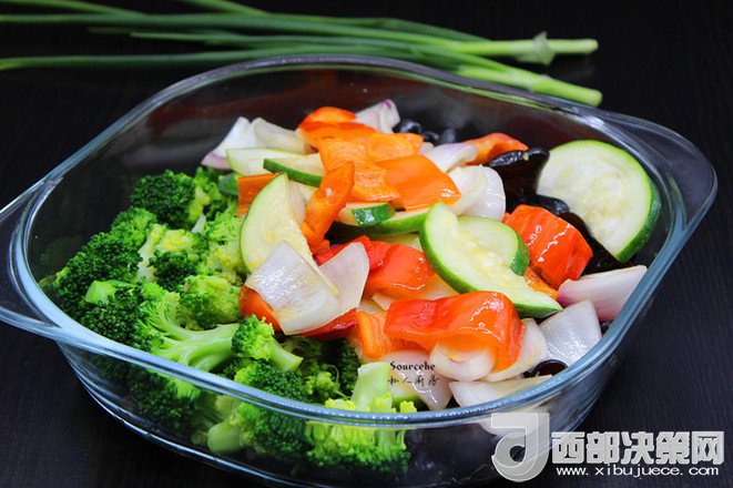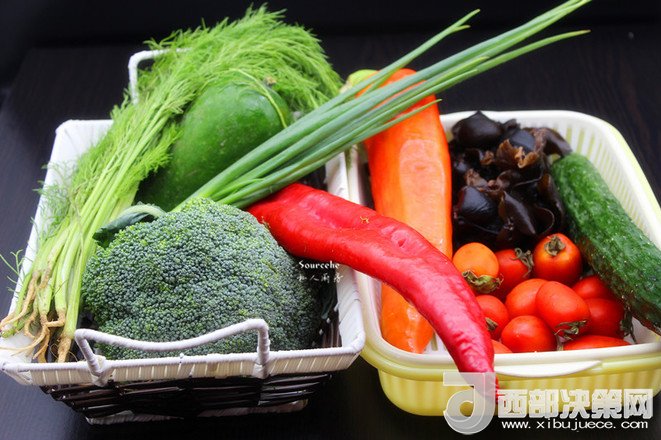 主料:木耳 100克   西蘭花 300克   洋蔥 100克   小番茄 200克   甜辣椒 100克   節(jié)瓜 200克   黃瓜 200克