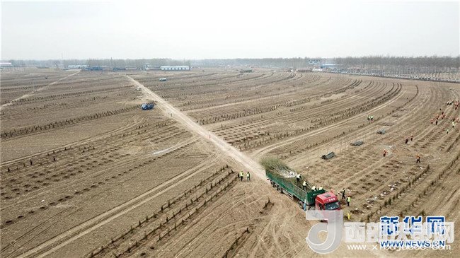 工人在河北雄安新區(qū)“千年秀林”工程施工現(xiàn)場施工(3月21日攝)。新華社記者 牟宇 攝