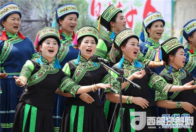 4月18日,在廣西百色市隆林各族自治縣舉辦的“三月三”歌會(huì)上,人們演唱山歌。新華社發(fā)(林斌 攝)