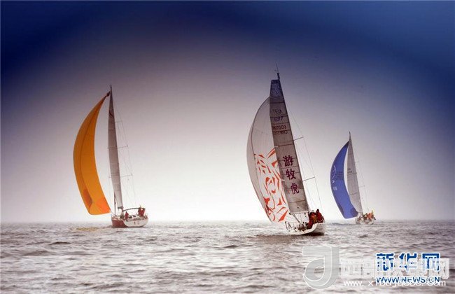 參賽賽船在2016年第七屆環(huán)海南島國(guó)際大帆船賽三亞-海口拉力賽的比賽中(2016年3月14日攝)。新華社記者 楊冠宇 攝