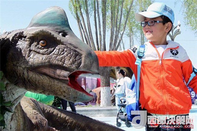 今天,神秘恐龍展在中國(guó)花卉博覽園啟幕?;ú﹫@里的大型侏羅紀(jì)恐龍展,仿若好萊塢電影里的侏羅世界,飛龍、霸王龍、三角龍……這些真實(shí)還原的仿真恐龍?jiān)煨透鳟?,吸引廣大銀川市民前來觀賞。(實(shí)習(xí)生 海東)