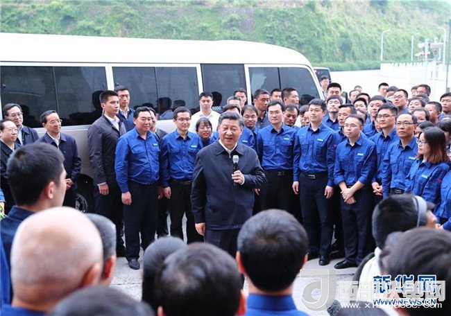 4月26日下午,中共中央總書記、國家主席、中央軍委主席習近平在武漢主持召開深入推動長江經(jīng)濟帶發(fā)展座談會并發(fā)表重要講話。這是座談會前,習近平于24日下午在三峽大壩左岸電站同技術(shù)人員、勞動模范、工作人員代表親切交流。新華社記者 謝環(huán)馳 攝