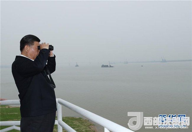 4月26日下午,中共中央總書記、國家主席、中央軍委主席習近平在武漢主持召開深入推動長江經(jīng)濟帶發(fā)展座談會并發(fā)表重要講話。這是座談會前,習近平于25日上午乘船沿江察看兩岸生態(tài)環(huán)境和發(fā)展建設情況。新華社記者 謝環(huán)馳 攝