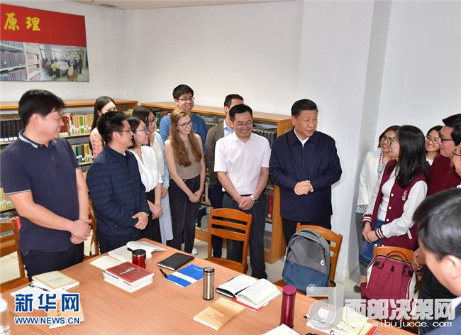 隨后,習(xí)近平走進(jìn)國際馬克思主義文獻(xiàn)中心,察看館藏馬克思主義典籍,詢問“馬藏工程”進(jìn)展情況,稱贊他們的工作非常有意義。閱覽室里,一些中外學(xué)生正在就“解讀新時代”進(jìn)行座談交流。習(xí)近平走到他們中間,認(rèn)真傾聽討論,并同大家互動交流。總書記問大家為什么選擇馬克思主義專業(yè)、學(xué)習(xí)這個專業(yè)有什么體會,同學(xué)們興奮地一一回答。同學(xué)們問總書記“您是一個堅定的馬克思主義者,您學(xué)習(xí)馬克思主義有什么好的方法”,總書記熱情同大家分享了自己的學(xué)習(xí)經(jīng)驗。他對在場的外國留學(xué)生說,要了解中國,就要了解中國的歷史、文化、人文思想和發(fā)展階段,特別是要了解當(dāng)代中國的馬克思主義。習(xí)近平強(qiáng)調(diào),北京大學(xué)是中國最早傳播和研究馬克思主義的地方,為馬克思主義在中國的傳播和中國共產(chǎn)黨的成立作出了重要貢獻(xiàn)。今年是馬克思誕辰200周年,也是《共產(chǎn)黨宣言》誕生170周年。我們對馬克思和《共產(chǎn)黨宣言》的最好紀(jì)念,就是把黨的十九大精神和新時代中國特色社會主義思想這一當(dāng)代中國馬克思主義研究好、宣傳好、貫徹好。他勉勵大家緊密聯(lián)系世情國情黨情的變化,認(rèn)真開展新時代中國特色社會主義思想研究,拿出更多有分量有說服力的研究成果。