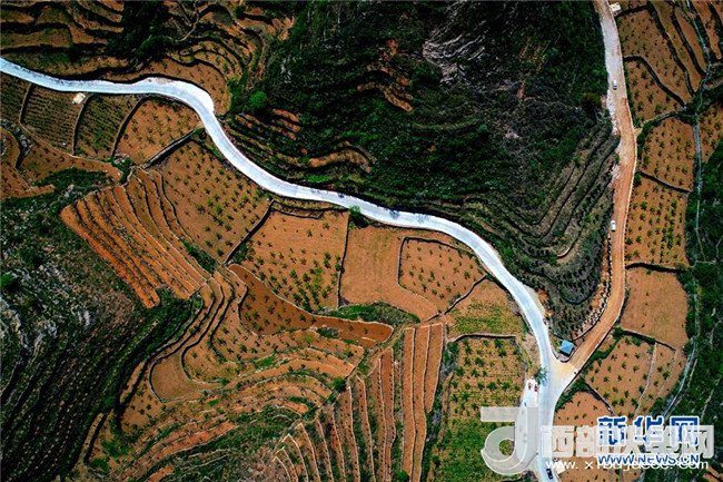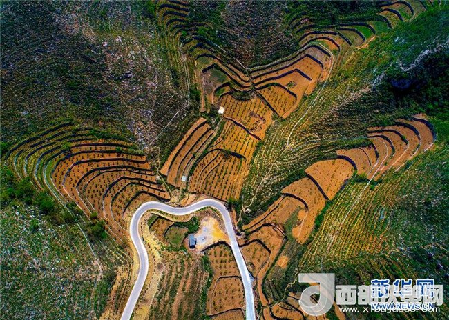 這是5月6日無人機拍攝的涉縣關防鄉(xiāng)后池村梯田和公路。