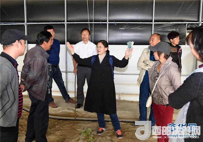 在新疆和田國(guó)家農(nóng)業(yè)科技園先導(dǎo)區(qū)葡萄示范種植大棚,從北京專程趕來(lái)的葡萄專家徐海英(中)為當(dāng)?shù)厝罕妭魇谄咸逊N植管理技術(shù)(4月19日攝)。