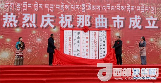 ?。啡丈衔纾鞑啬乔信e行撤地設(shè)市掛牌儀式。那曲市從而成為西藏第六個(gè)地級(jí)市,也是目前全國(guó)最年輕、海拔最高的地級(jí)市。