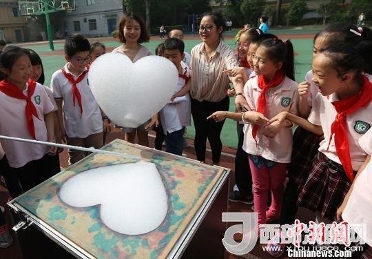 孩子們體驗造云工程師,制造出“心形云”。 泱波 攝